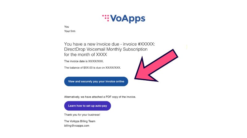 Find your recent invoice notification and click, “View and securely pay your invoice online”